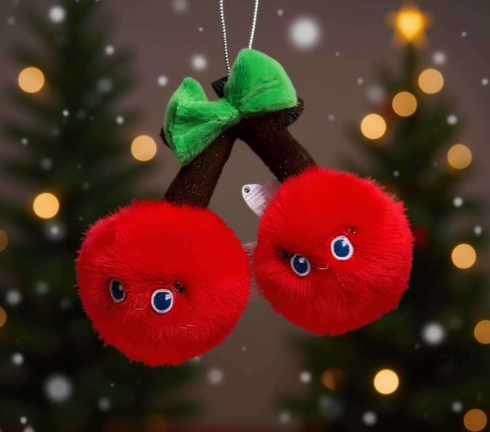 Cherry Plush Hanging Ornament 10Cm Cartoon Soft Faux Fur Christmas Decoration