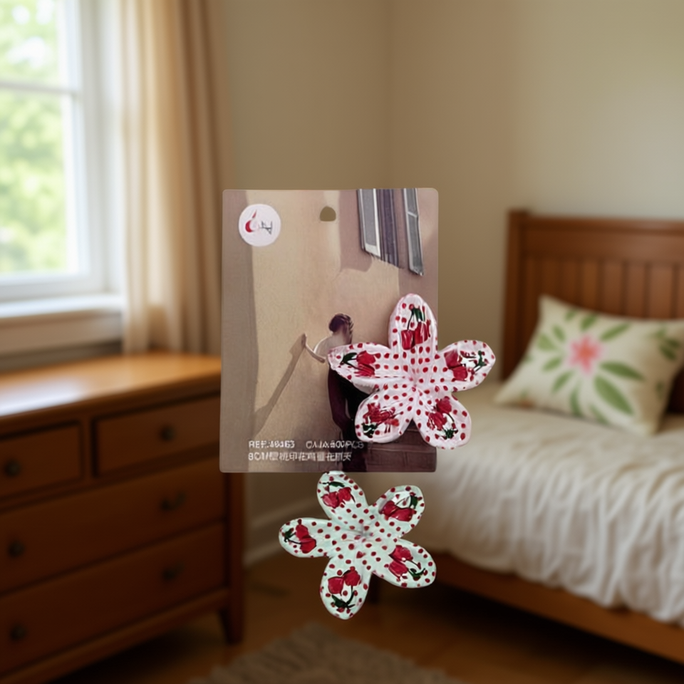 Fermaglio per capelli Angelina Cherry Print Frangipani da 8 cm, accessorio per capelli da donna per uso quotidiano