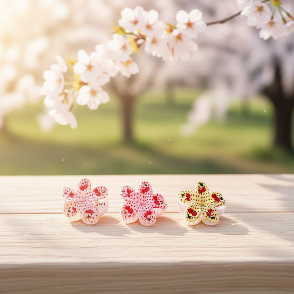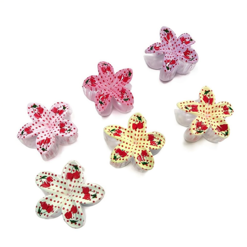 Fermaglio per capelli a forma di frangipani con stampa ciliegia, 8 cm