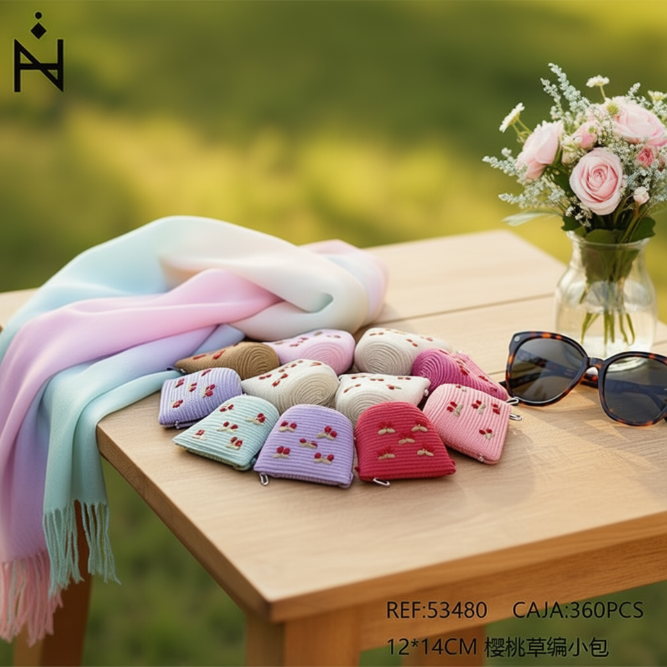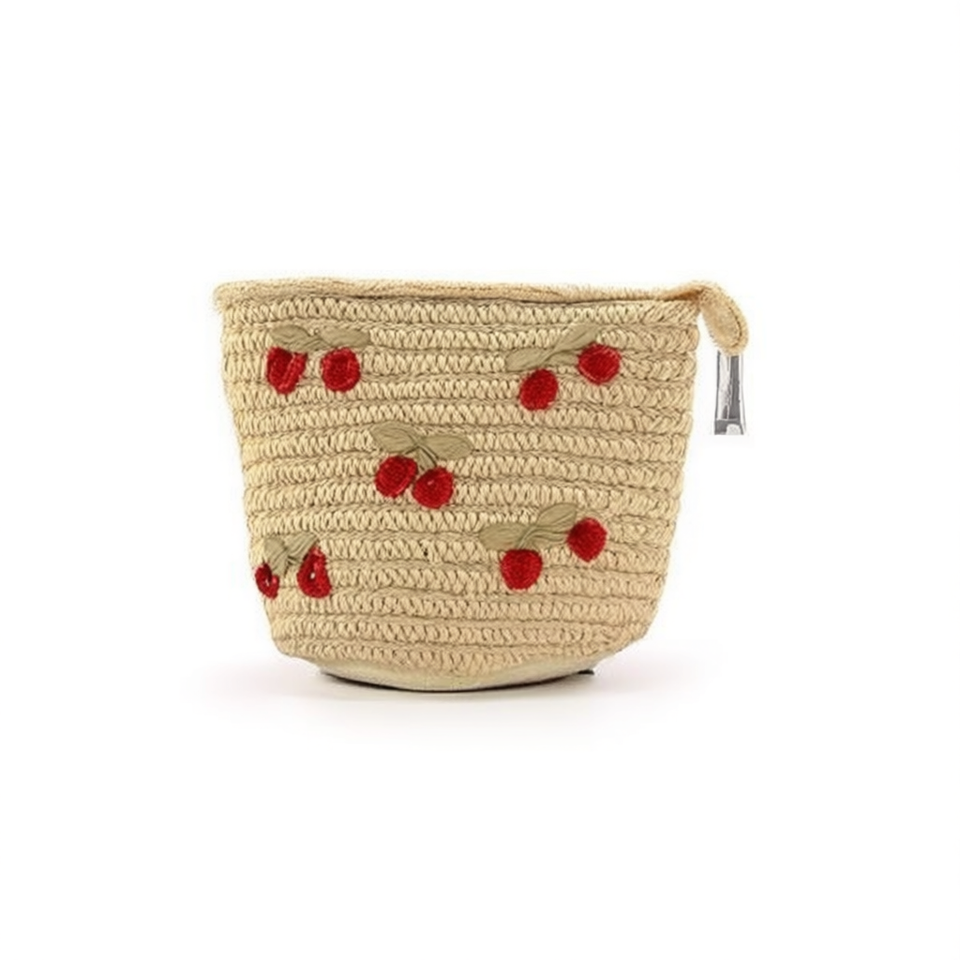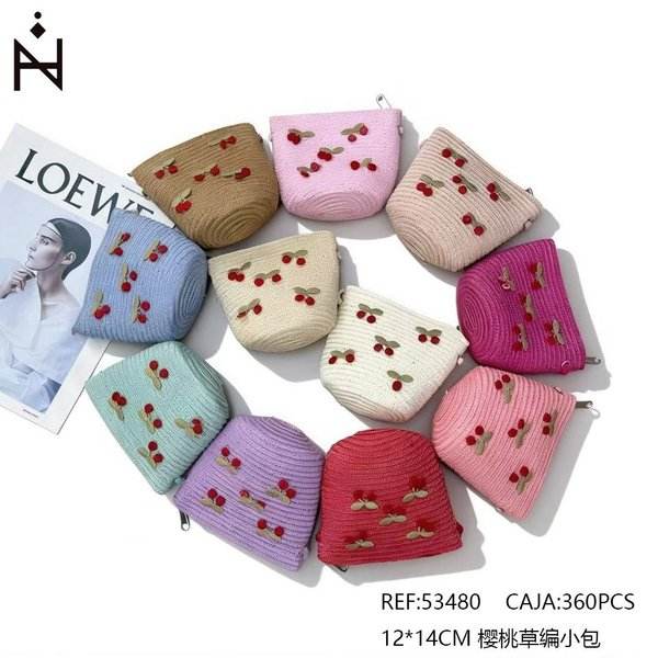 Borsa in paglia intrecciata color ciliegia 12x14cm, mini pochette per donna, accessorio moda