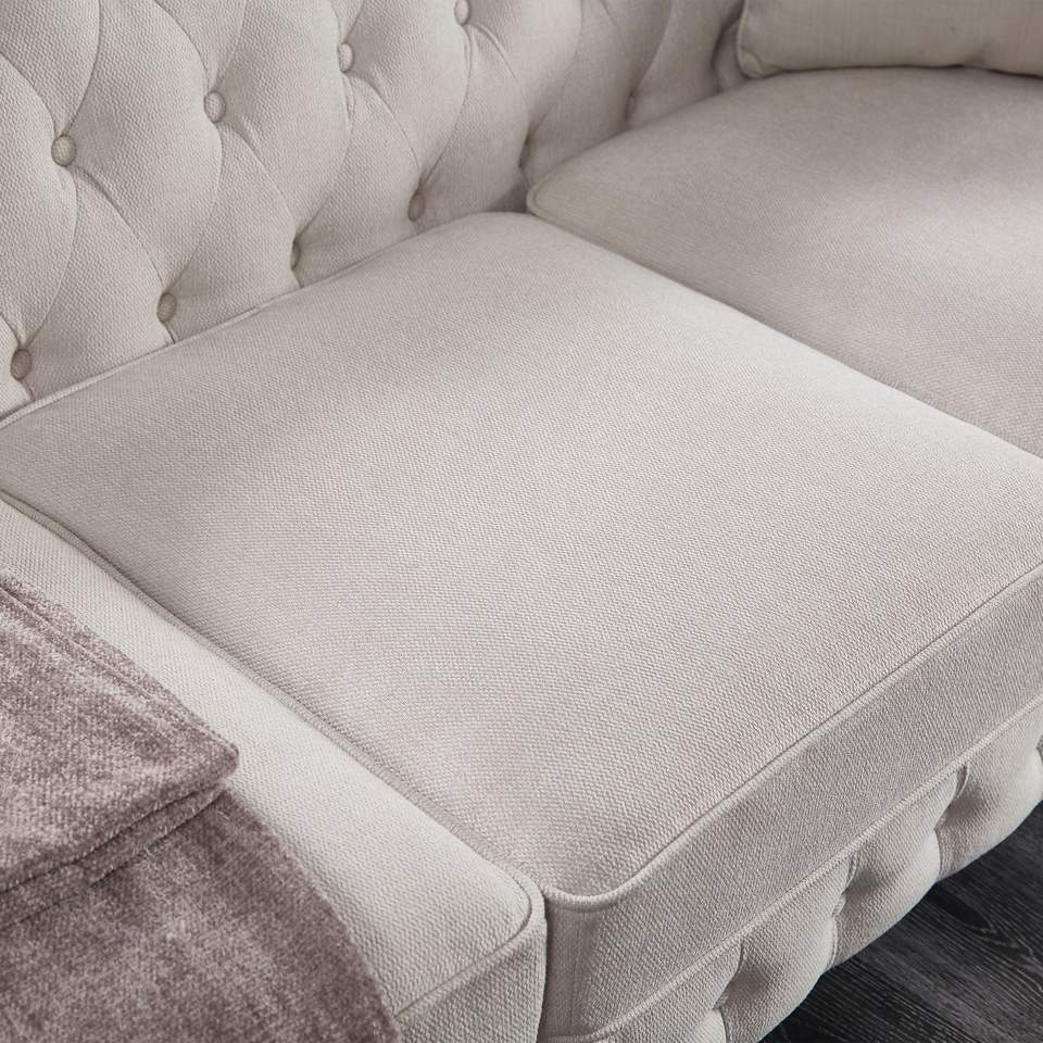 Divano Chesterfield in Tessuto di Lino Beige per Soggiorno