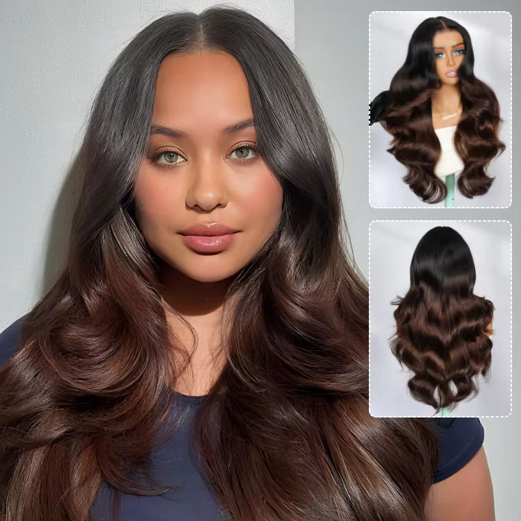 Prodotti:Parrucche in Capelli Umani con Taglio Stratificato e Effetto Ombre Castano Marrone