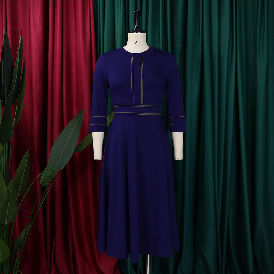 Elegante Abito Midi da Donna con Collo Tondo e Maniche 3/4, Stile Formale per Ufficio e Lavoro