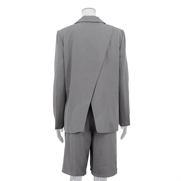 Completo Set Estivo da Donna 2 Pezzi: Blazer Grigio Chic con Schiena Scoperta e Shorts - Collezione 2026