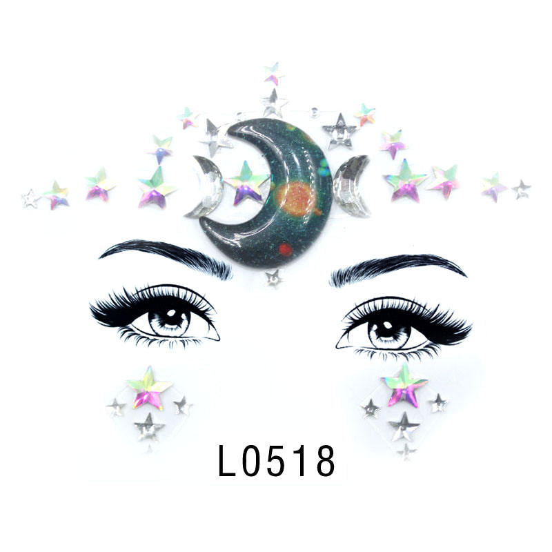 Chic Jewel ZHONGLI Temporary Face Tattoo Sticker Resin Diamond and Flower Logo Colourful the Owl for Makeup Accessory