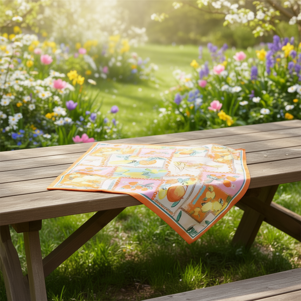 Orange Lemon Square Scarf 70x70Cm Fruit Pattern Polyester Spring Summer Fashion Accessory For Women