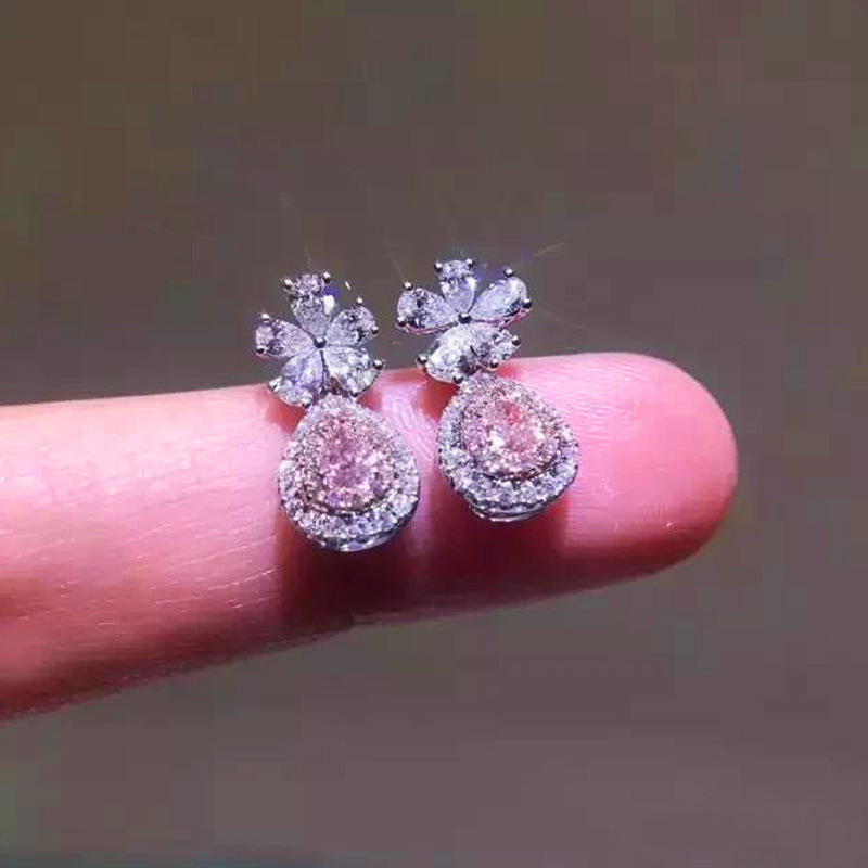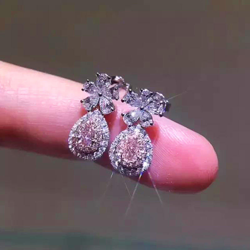 Orecchini Pendenti Ovali Chic con Diamanti Rosa, Montatura a Griffe in Argento 925, Gioielli Classici da Sposa per Donna