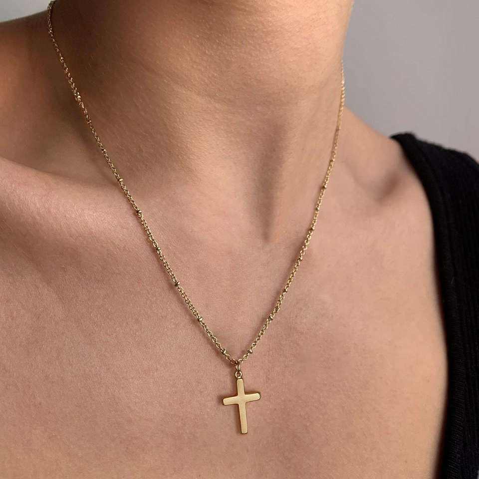 Chic Stainless Steel Cross Necklace for Women Adjustable Chain Daily Wear Valentine Birthday Gift