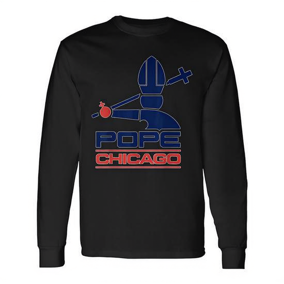 T-shirt a maniche lunghe Chicago Pope unisex con scollo rotondo, regalo religioso, stampa serigrafica