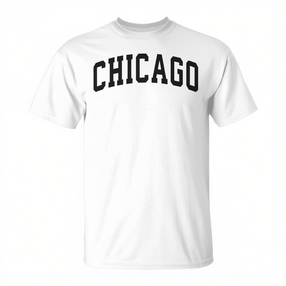 T-Shirt Classica con Stampa Retrò Chicago, Maglietta Promozionale con Stampa Chicgo Vintage