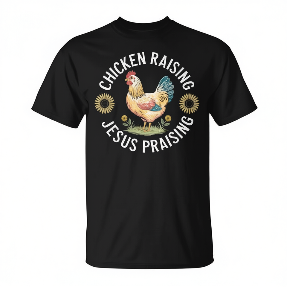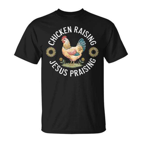 T-shirt Chicken Raising Jesus Praising, unisex, per adulti, a maniche corte, girocollo, regalo religioso