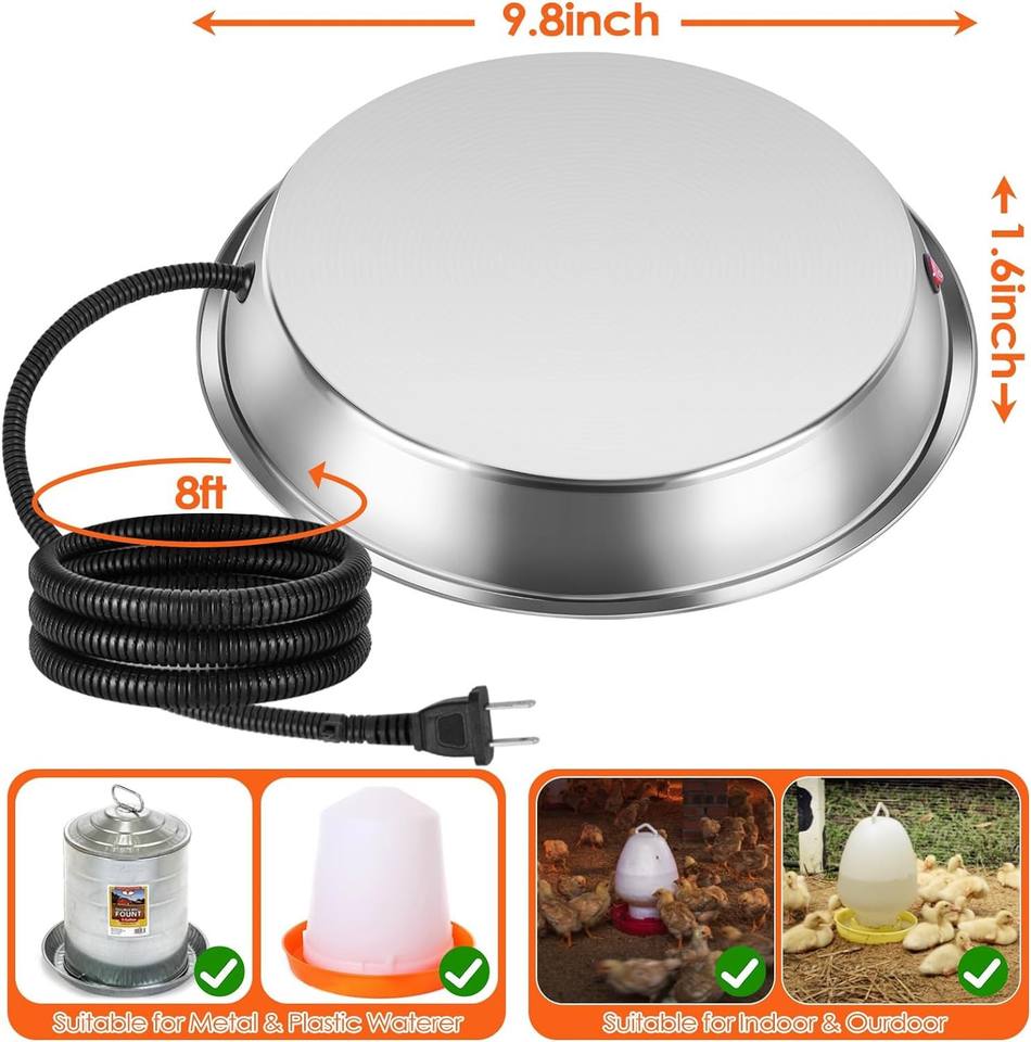 Base Riscaldata per Abbeveratoio per Polli 11 Pollici per Fontane Metalliche, Riscaldatore per Abbeveratoio Invernale