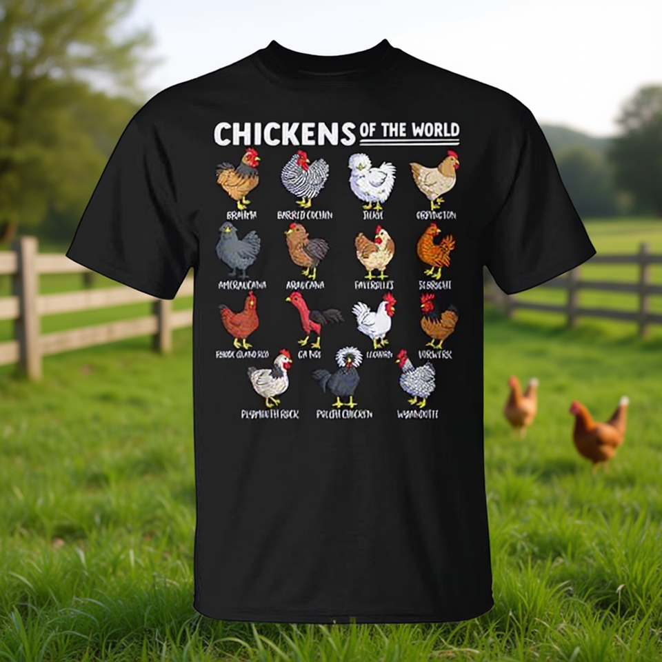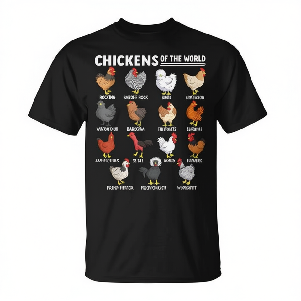 T-shirt educativa Chickens Of The World per gli amanti degli animali da fattoria