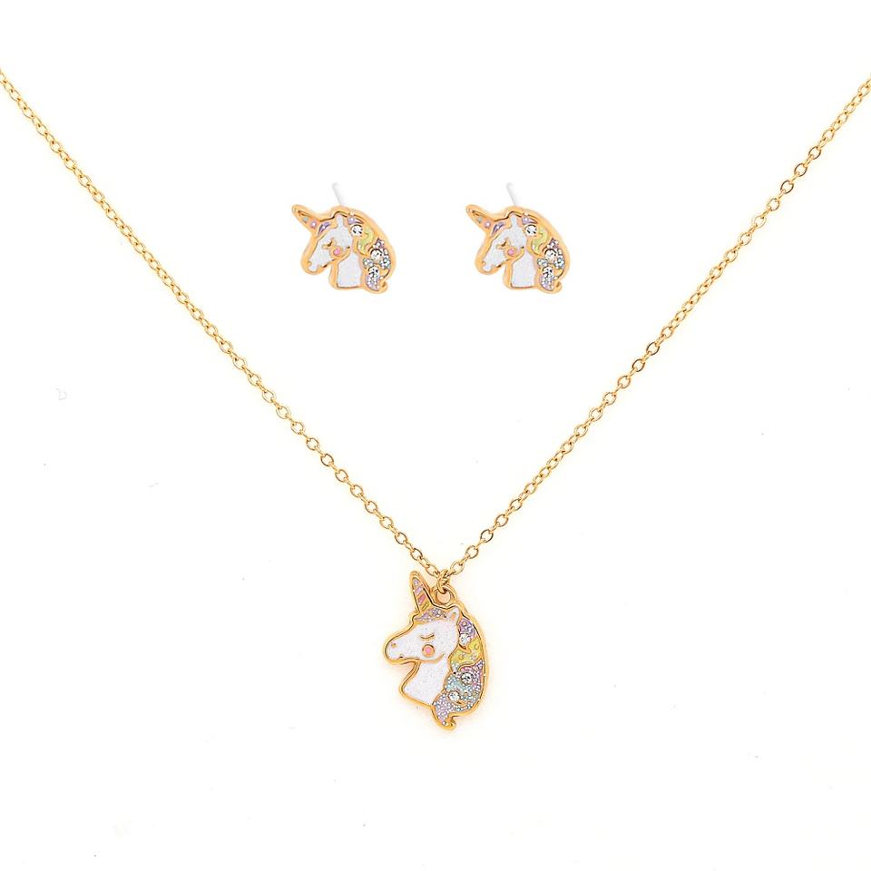 Set di collana e orecchini unicorno placcato oro Design bambino