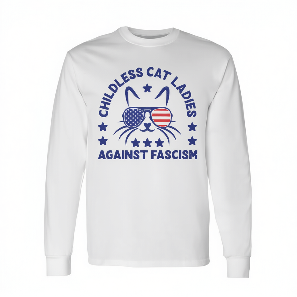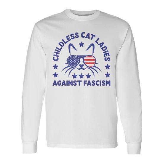 T-shirt a maniche lunghe Childless Cat Ladies Against Fascism