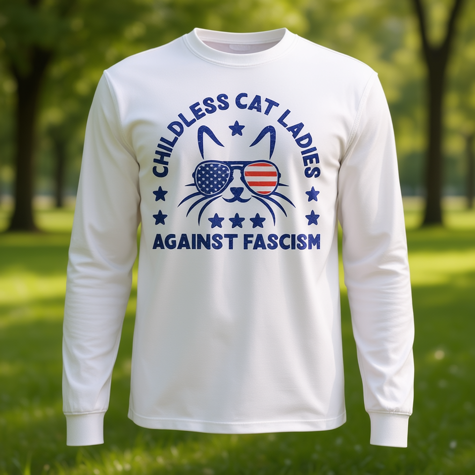 T-shirt a maniche lunghe Childless Cat Ladies Against Fascism