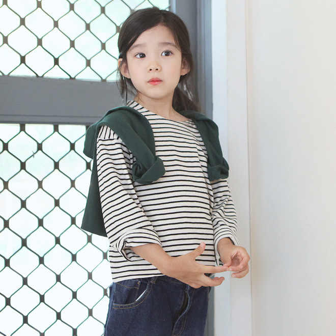 Shanghai/Ningbo of Children Girl's Custom Label Black White Stripe Cotton Sweatshirt From China Alibaba