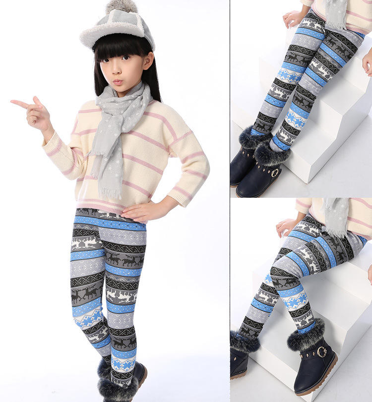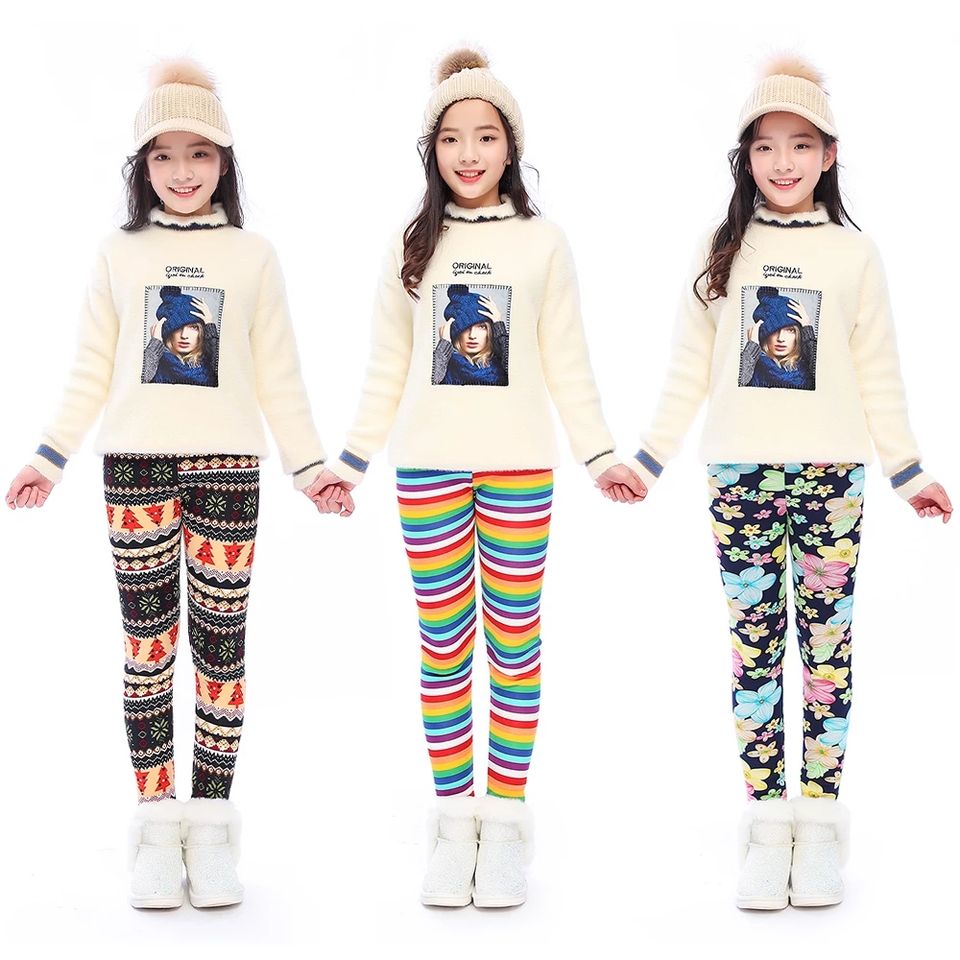 Children Girls' Pants Thick Fleece Winter Warm Print Leggings 2-12 Years Pantyhose / Tights
