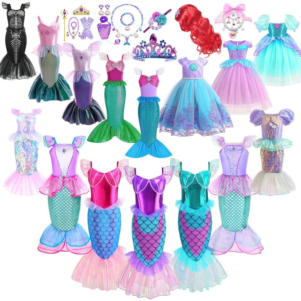 Children Halloween Cosplay Mermaid Dress Girls Birthday Party Fancy Dress up Ariel Princess the Little Mermaid Costume for Kids