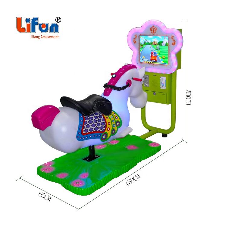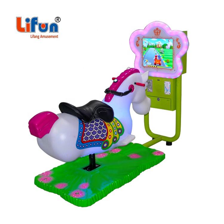 Bambini indoor a gettoni 3D horse kiddie swing rides videogioco giro di divertimento con schermo di gioco interattivo