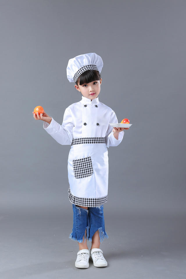 Children Professional Chef Cosplay White Uniform Costume Halloween Carnival Party for Kid Kitchen