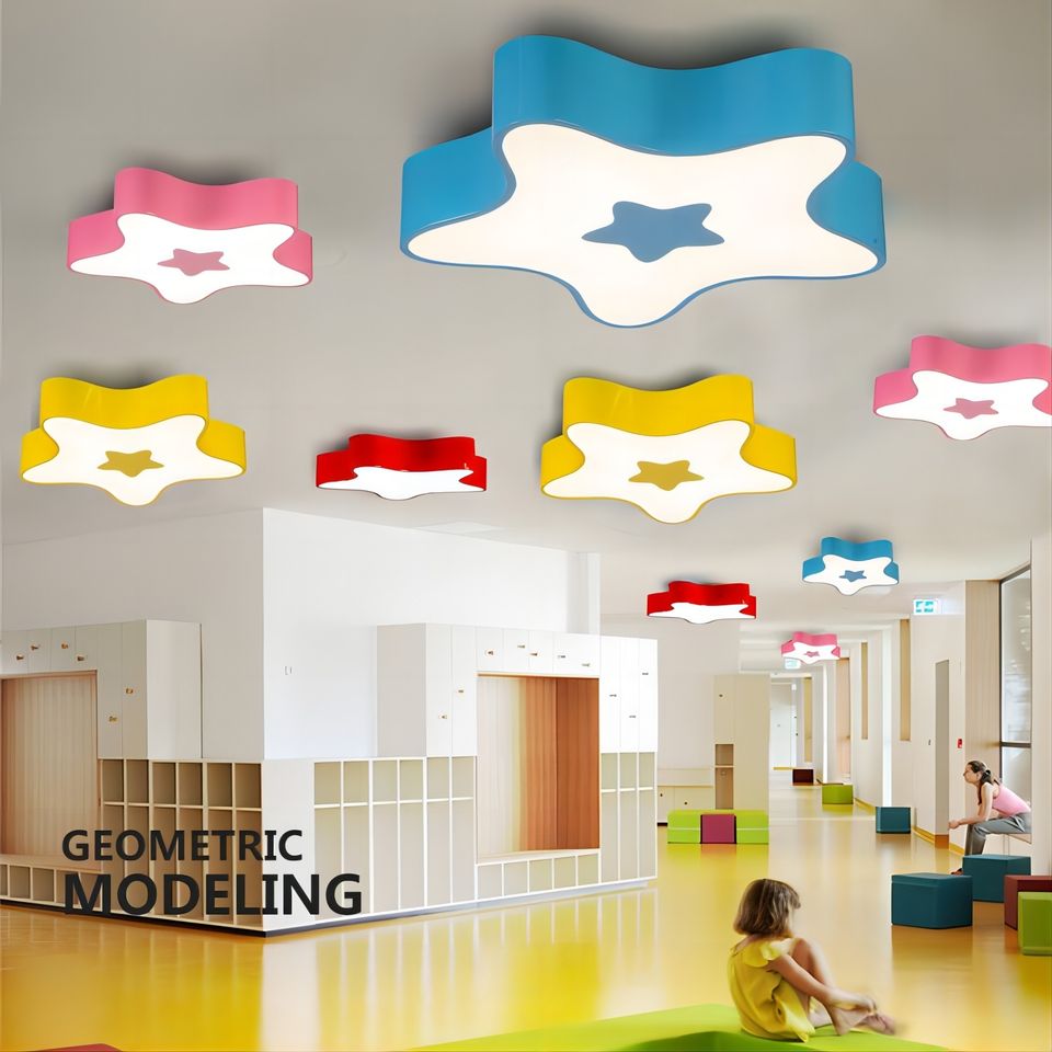Luce della stella dei bambini coloratissimo lampadario a LED a cinque punte per l'illuminazione educativa dell'aula di asilo nido