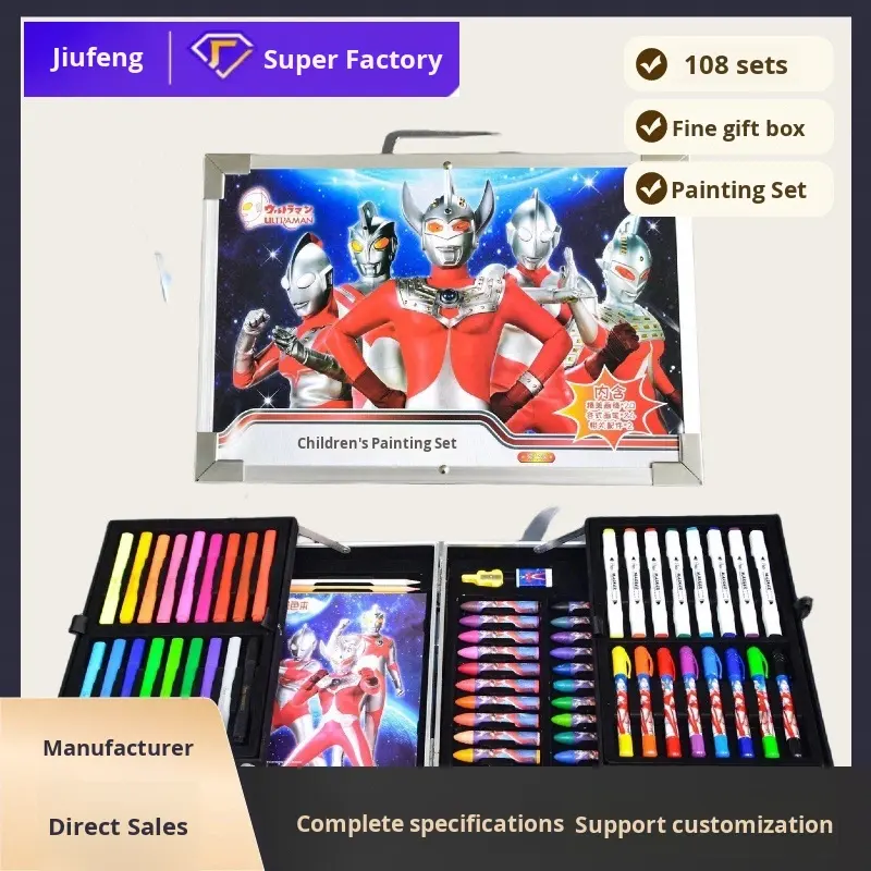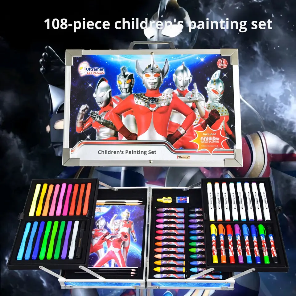 Set di Cancelleria per Bambini da 108 Pezzi, Confezione Regalo con Design Ultraman e Frozen, Penne ad Acquerello, Matite Colorate, Pastelli - Regalo Speciale di Compleanno