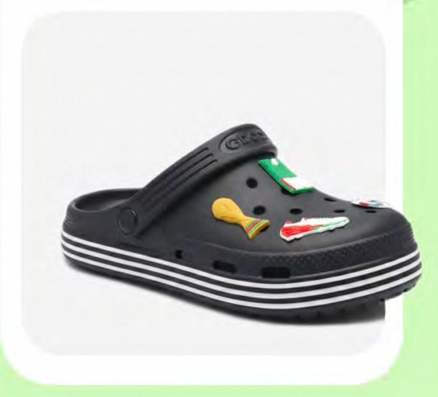 Zoccoli per Bambini con Spille Animate, Taglia 20, Strisce Nere, Punta Rotonda, Suola in EVA, Per Tutte le Stagioni, Tomaia in Plastica