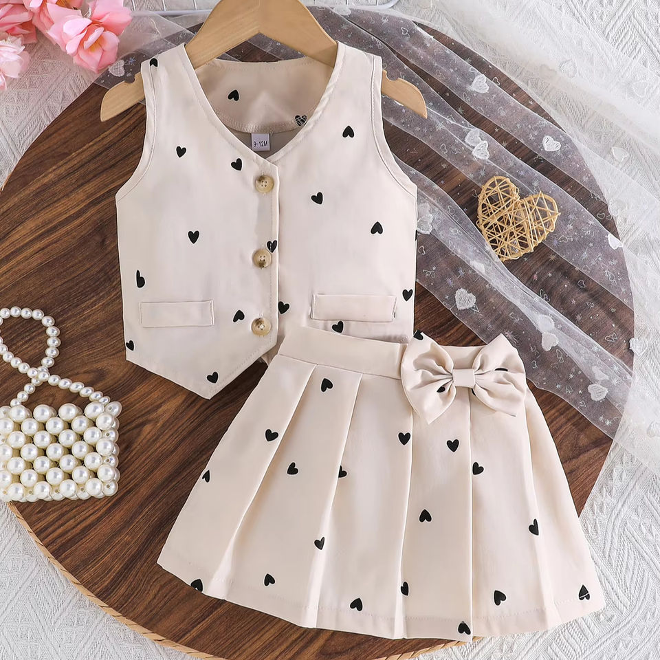 Abbigliamento per bambini modello cuore ragazza senza maniche gonna plissettata elegante fashiondue pezzi Set fabbrica all'ingrosso