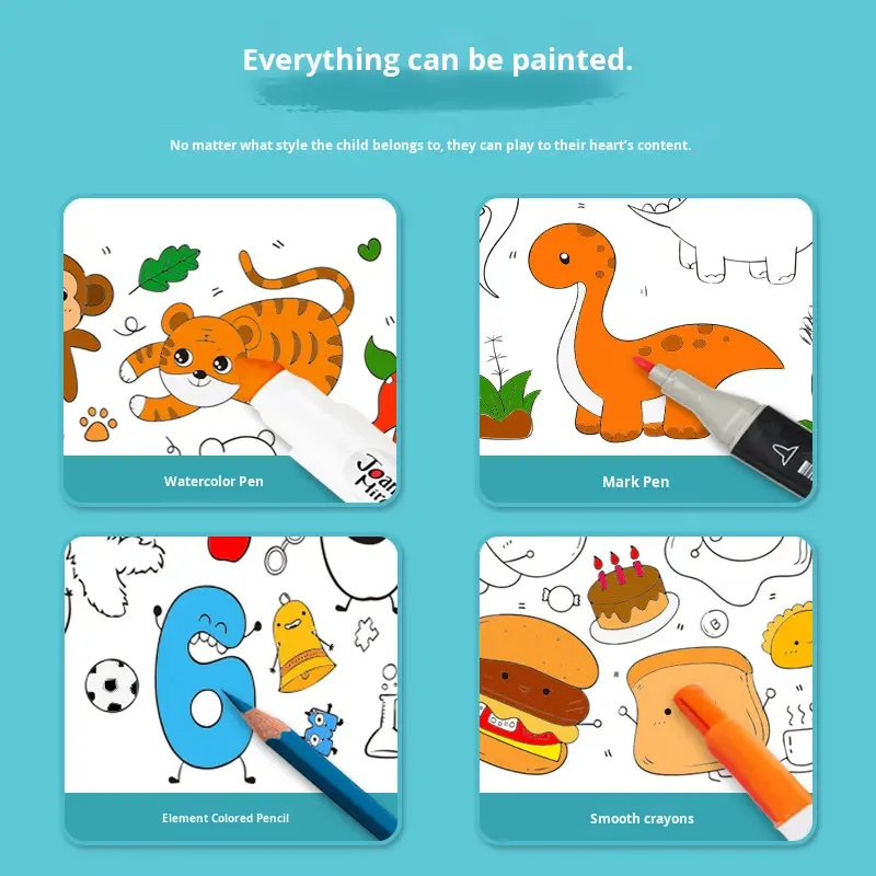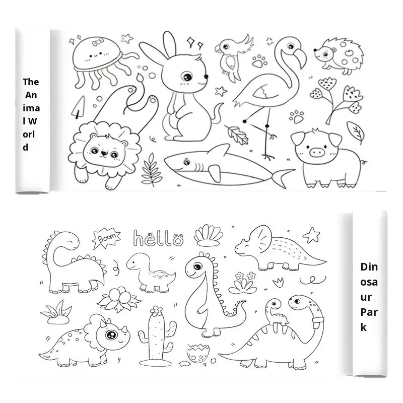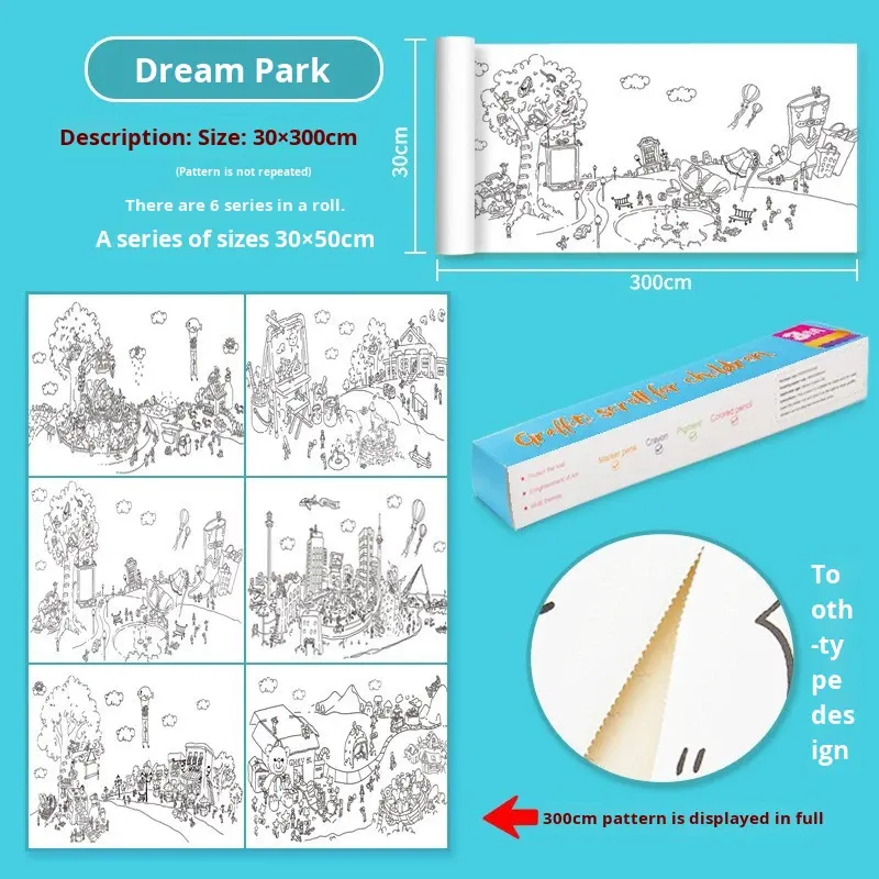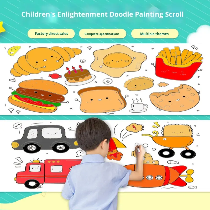Rotolo di Carta da Disegno per Bambini, Carta da Parati per Pittura, 3m di Lunghezza, 30cm di Larghezza, Cartoni Animati per Asilo, Colorazione