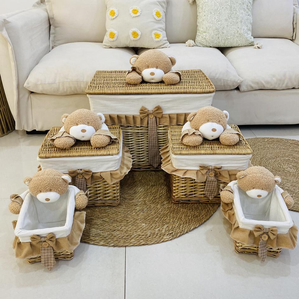 Children's Durable Willow Woven Hamper Set 5-PCS Storage Baskets with Detachable Liners and Plush Animal Top