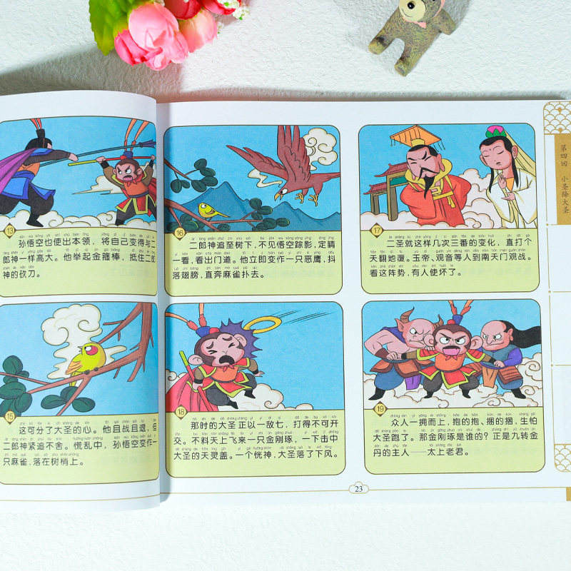 Set di quattro grandi romanzi classici in edizione per bambini, fumetti con Pinyin per studenti delle scuole elementari - Viaggio in Occidente, Romance Tre