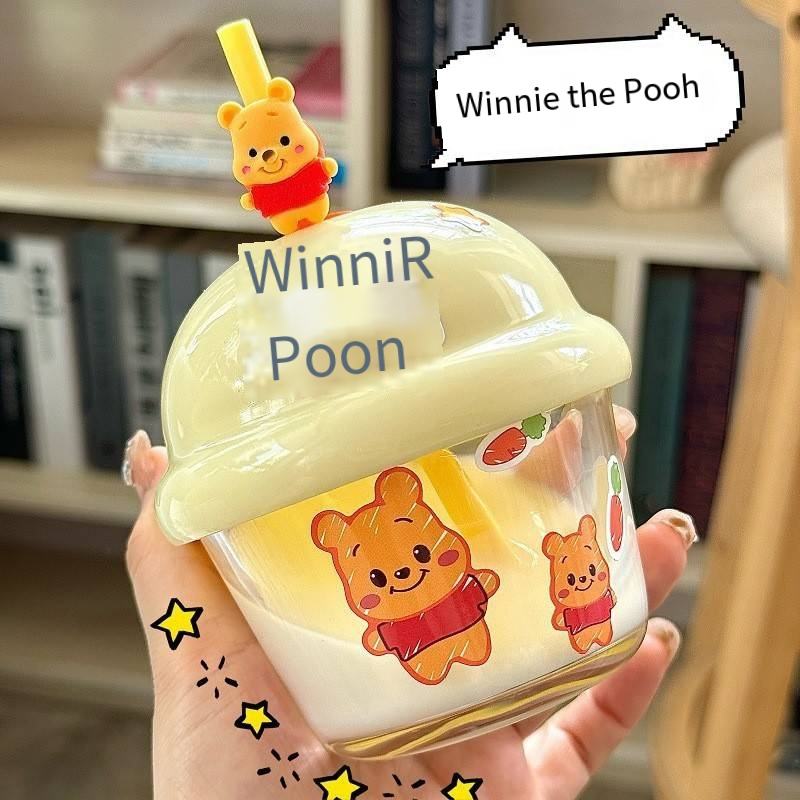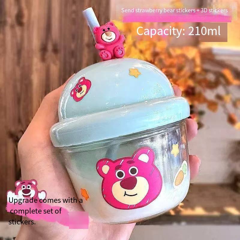 Set Regalo Tazza in Vetro per Bambini con Cannuccia, Design Orsetto Fragola, per Latte e Colazione