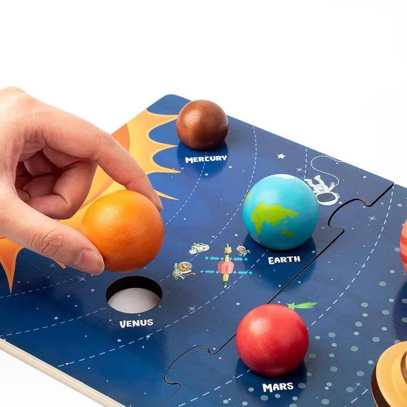 Children's Montessori Early Education Eight Planets Puzzle Cosmic Solar System Planet Cognitive Wooden Pairing Board Toys