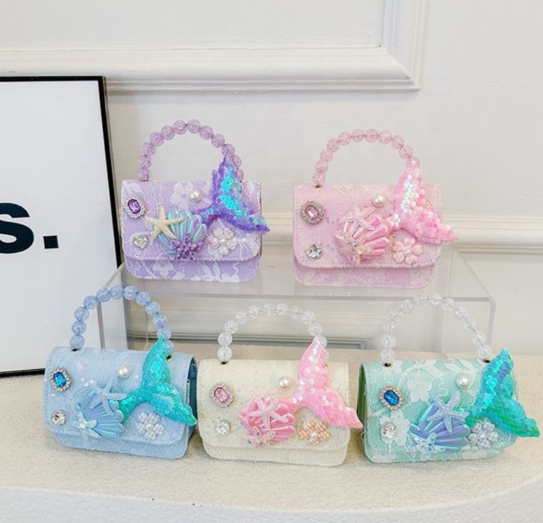Borsa a tracolla per bambini con sirena di perle nuova borsa per bambini borsa a tracolla da ragazza accessorio per principessa piccola fragranza