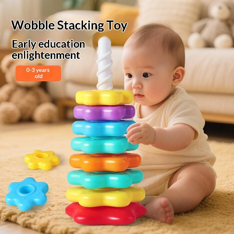 Children's Plastic Rainbow Turning Music Stacking Ring Educational Toy for 0-24 Months