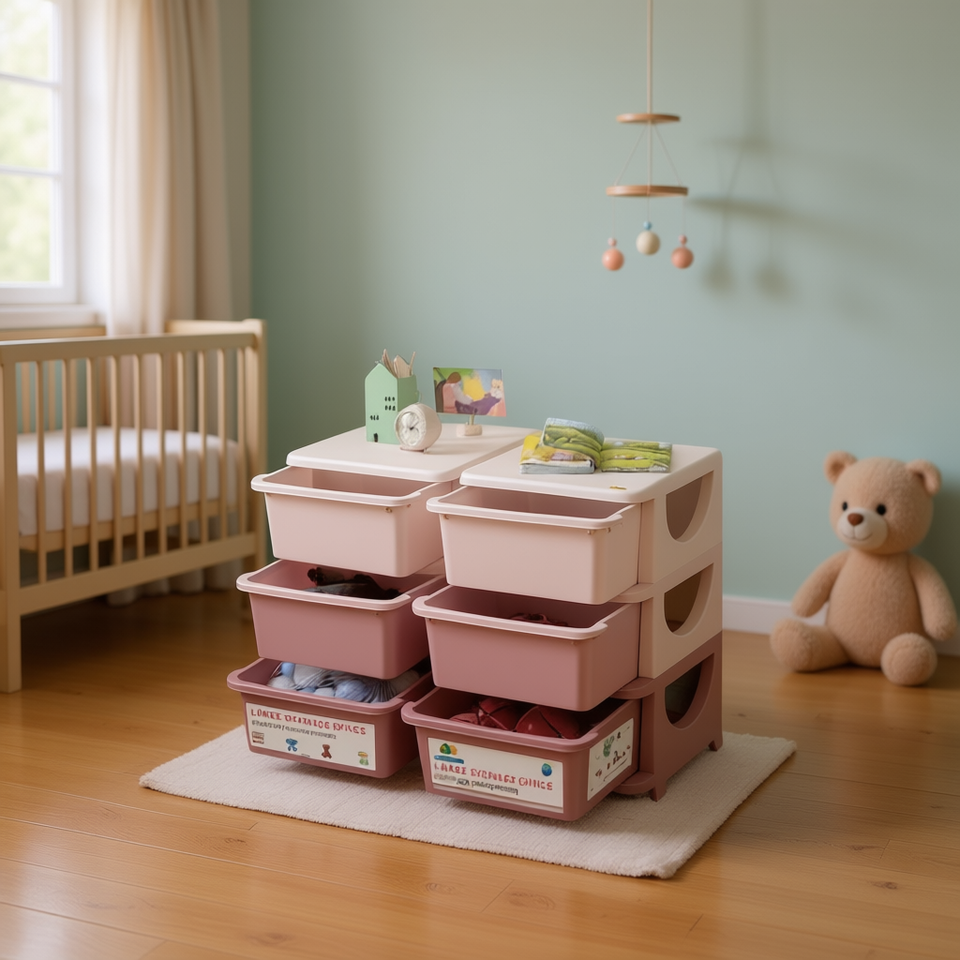 Children's Storage Unit Dresser Plastic Rectangular Toy Organizer For Kids Bedroom