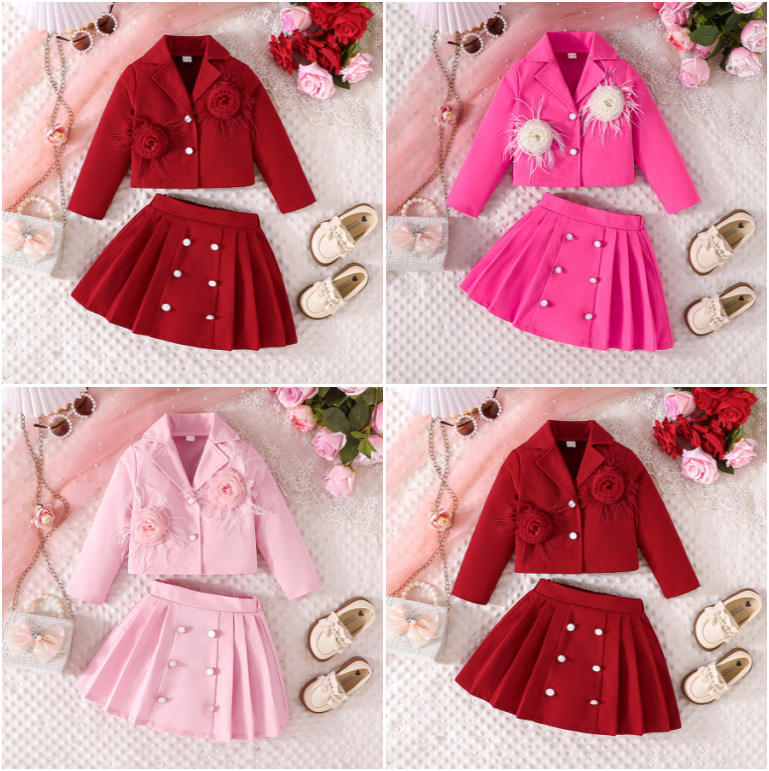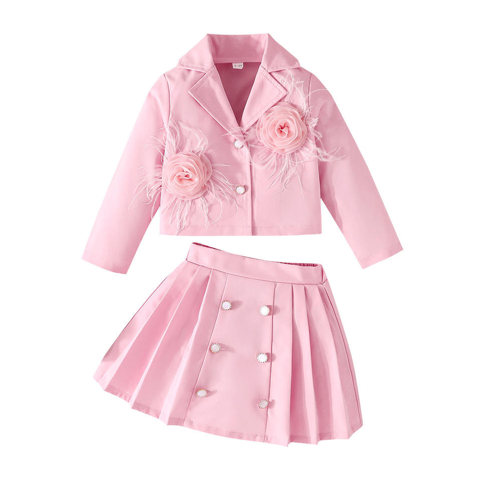 Completo Autunnale per Bambine, Giacca in Denim Stile Western Retrò di Alta Qualità con Pantaloni, Set Due Pezzi