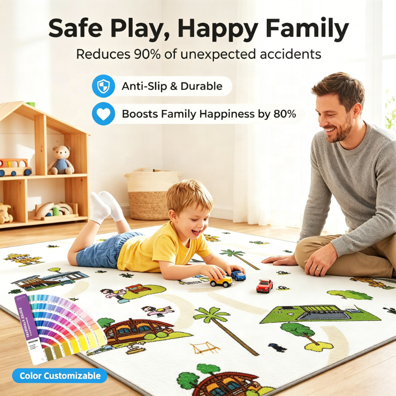 Wholesale Custom Size & Pattern Kids Carpet, Non Toxic Educational Play Mat for Baby Room with Free Design