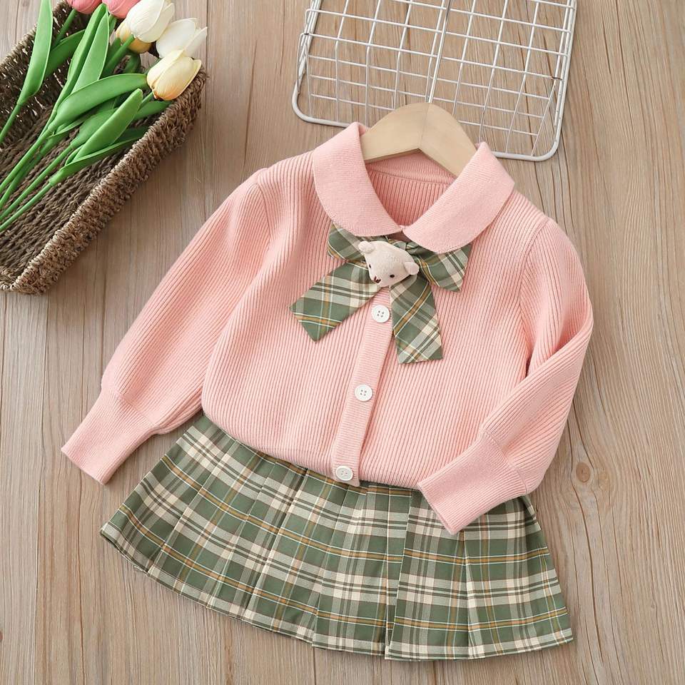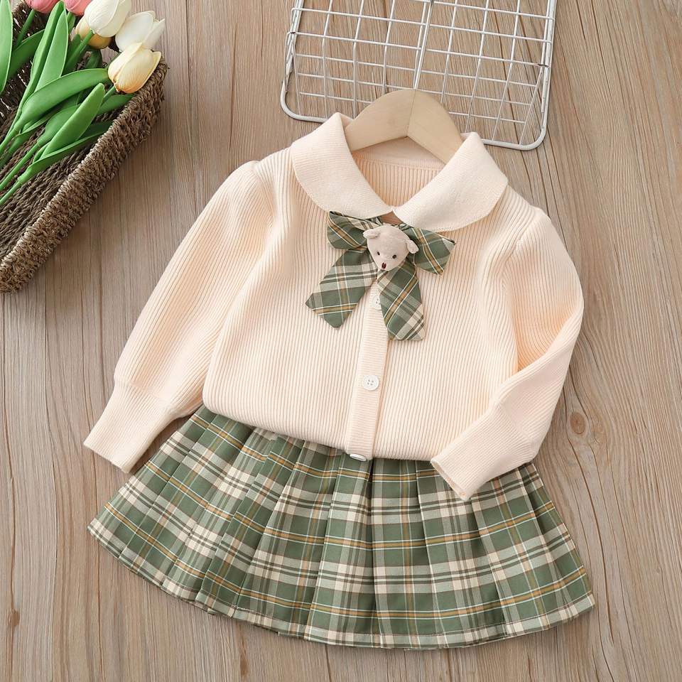 Maglione per bambini JK Set autunno nuovo stile gonna da principessa da bambina elegante Set di due pezzi abbigliamento autunnale per bambini