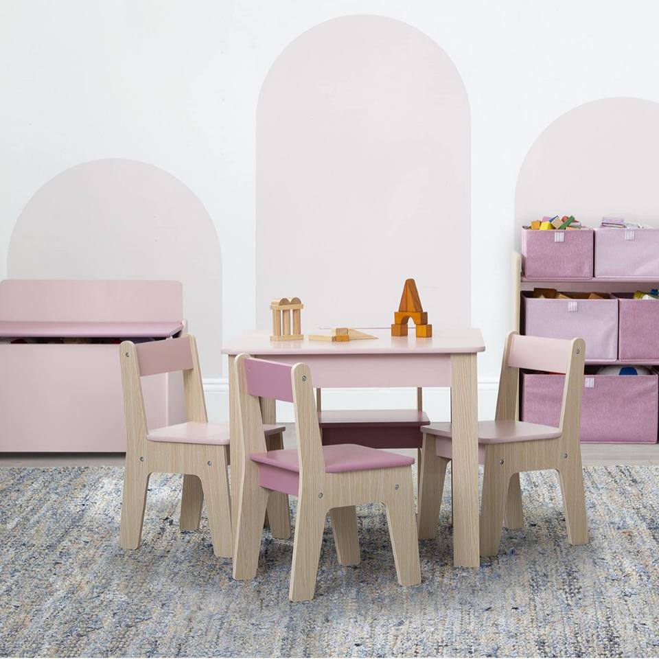 Tavolo per bambini e sedia Set in legno quattro sedie un tavolo stanza bambini scuola materna pittura gioco rosa
