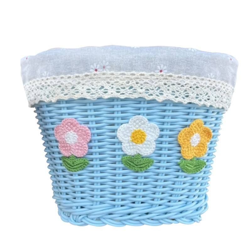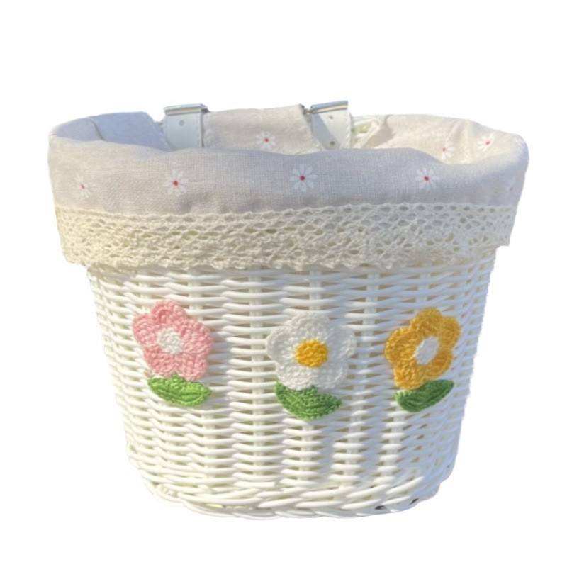 Cesto anteriore per bicicletta in plastica lavabile antipioggia per bambini con Design in Rattan e accessorio di rivestimento