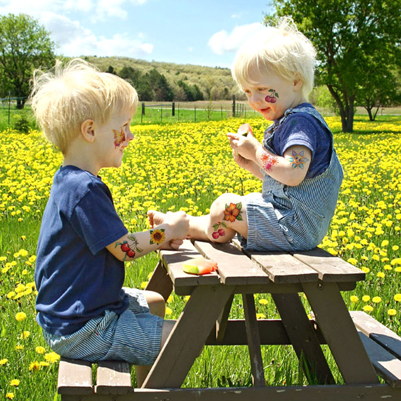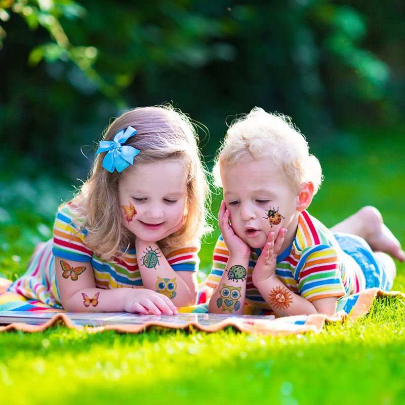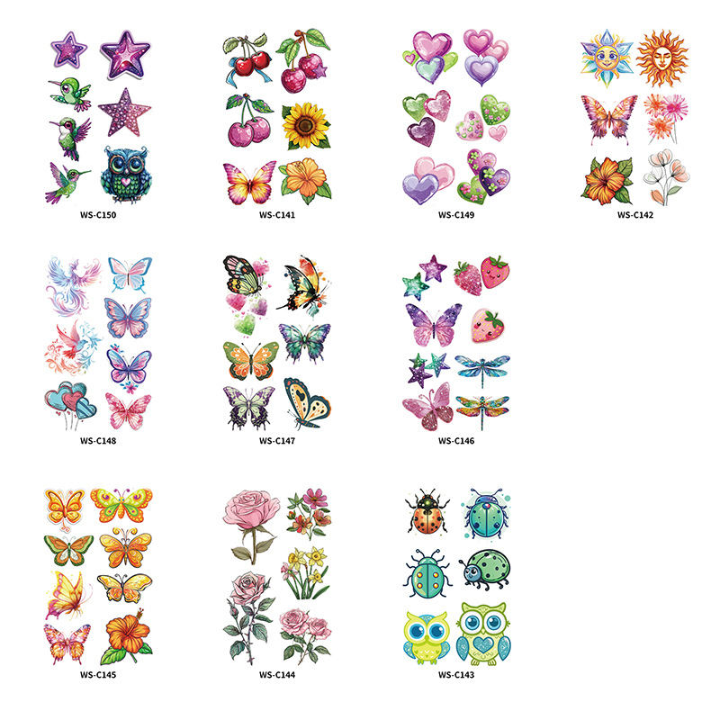 Children's Waterproof Temporary Cartoon Tattoo Stickers Sparkling Pink Flower Bird Butterfly Design
