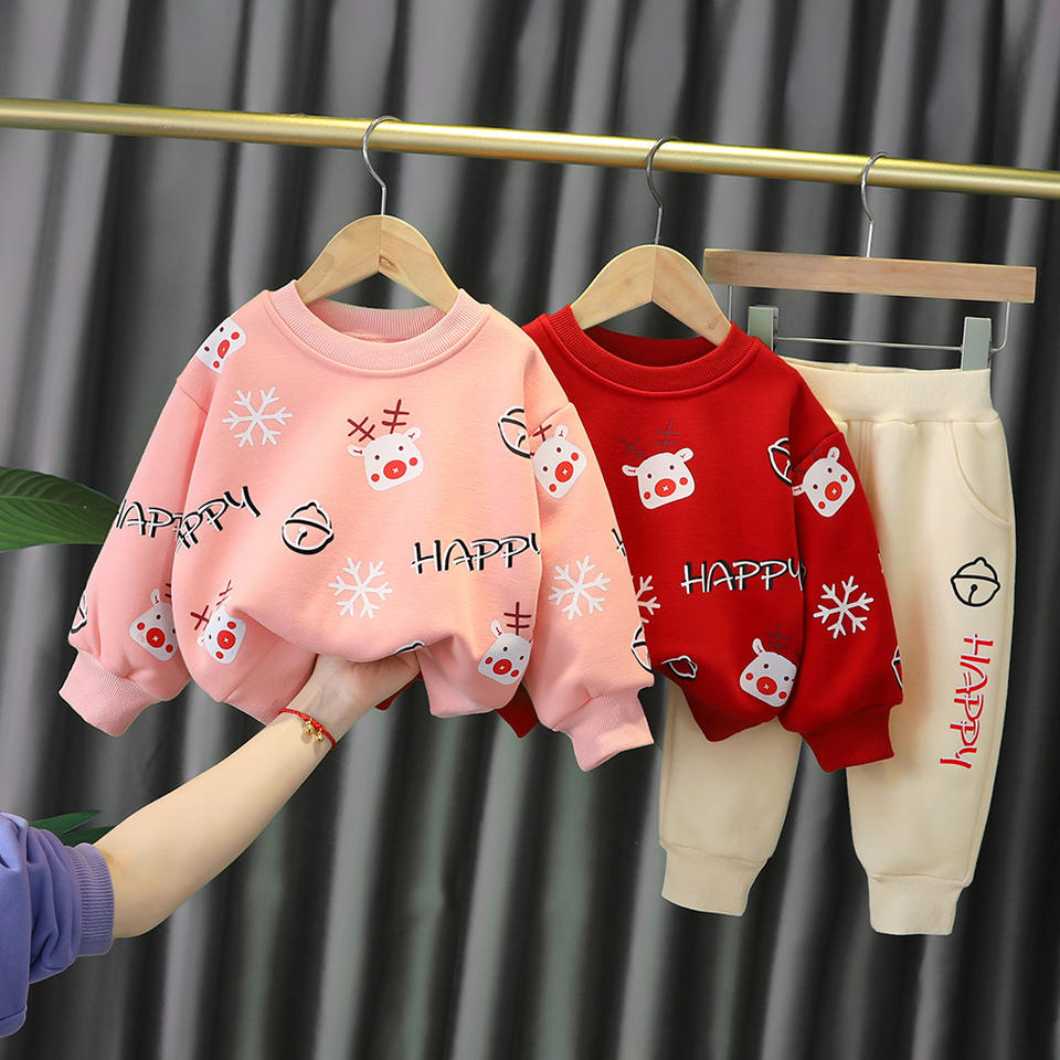 Set di abbigliamento di capodanno per bambini cervi con fiocco di neve di natale ispessito invernale per bambini