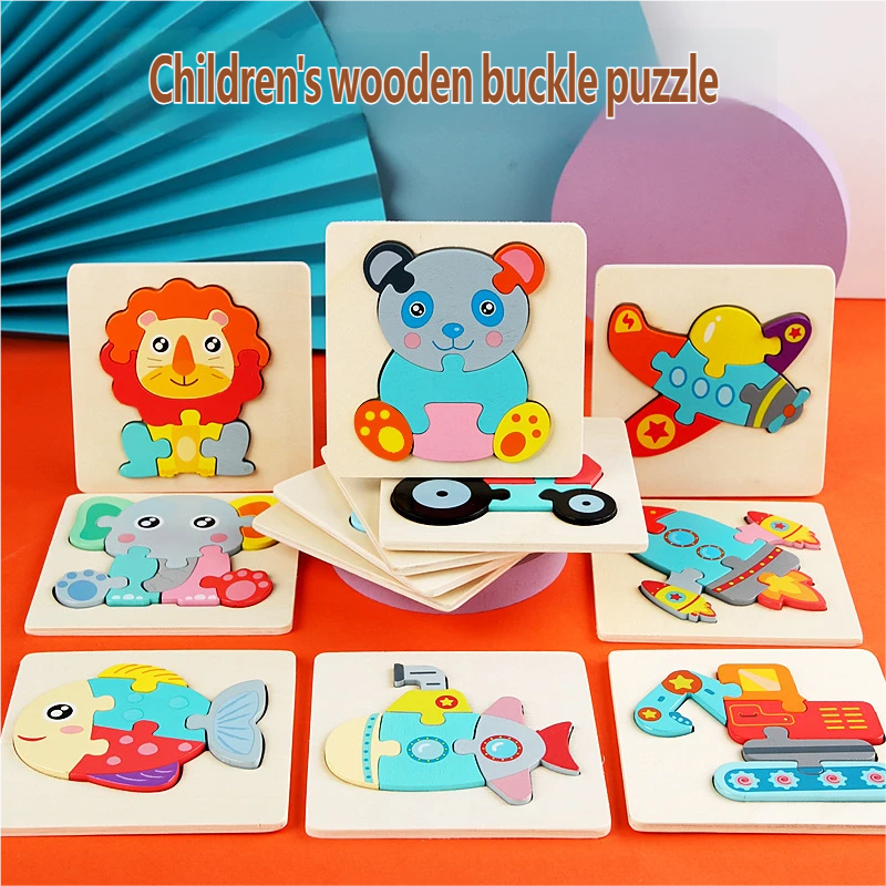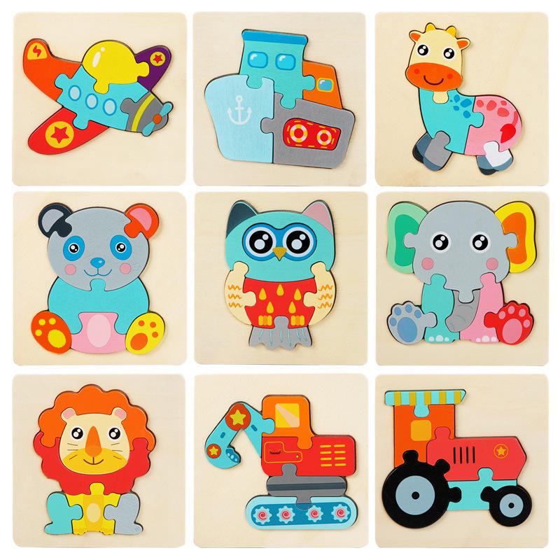 Puzzle 3D in Legno per Bambini 2-3 Anni, Coordinazione Occhio-Mano, Educazione Precoce, Sviluppo dell'Intelligenza, Animali