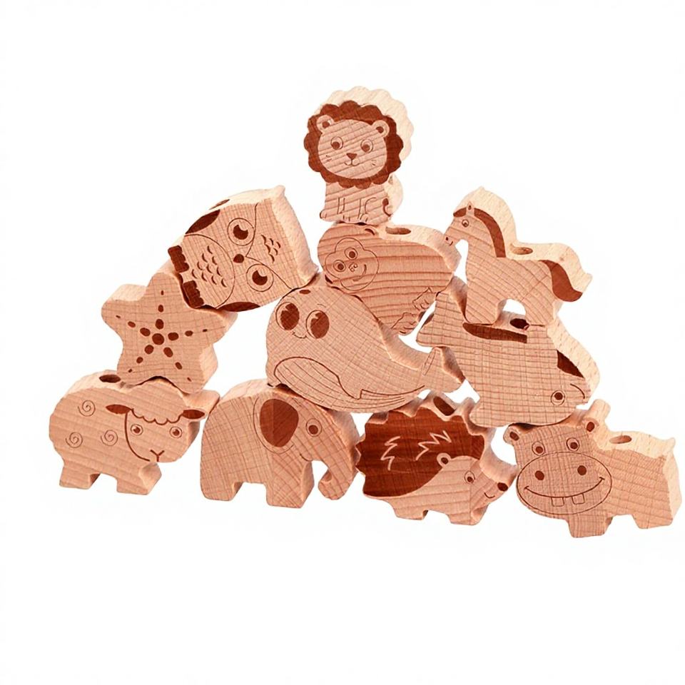Gioco Educativo in Legno per Bambini con Perline da Masticare, Alfabeto e Numeri da Infilare, per lo Sviluppo della Coordinazione Mano-Cervello