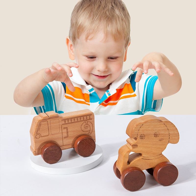 Carrello in Legno per Bambini, Auto a Inerzia Portatile, Giocattolo in Legno per l'Allenamento della Presa Muscolare, Auto Giocattolo in Legno, Giocattoli per Neonati