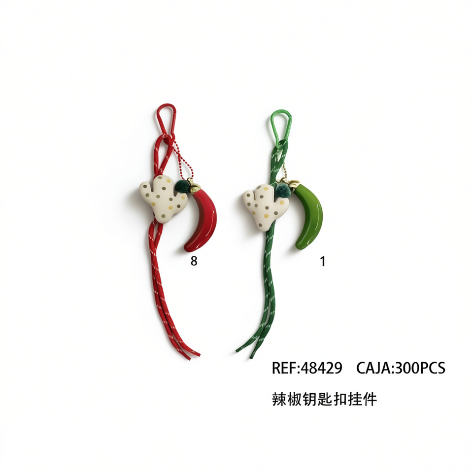 Portachiavi Peperoncino Angelina con Moschettone in Plastica Rosso Verde, Confezione da 300 Pezzi, Accessorio Decorativo