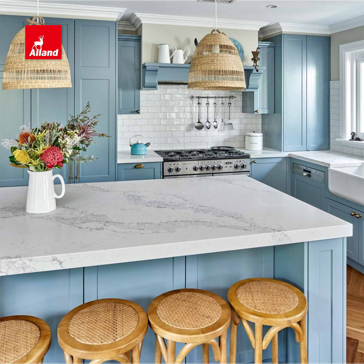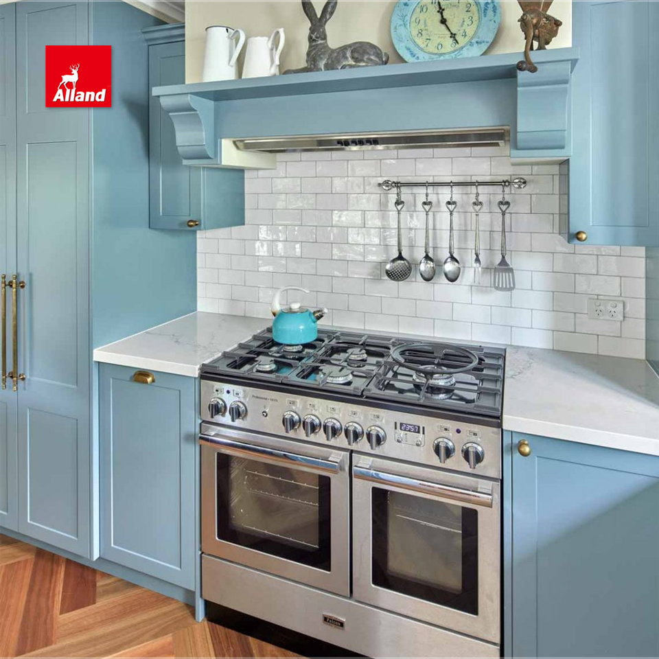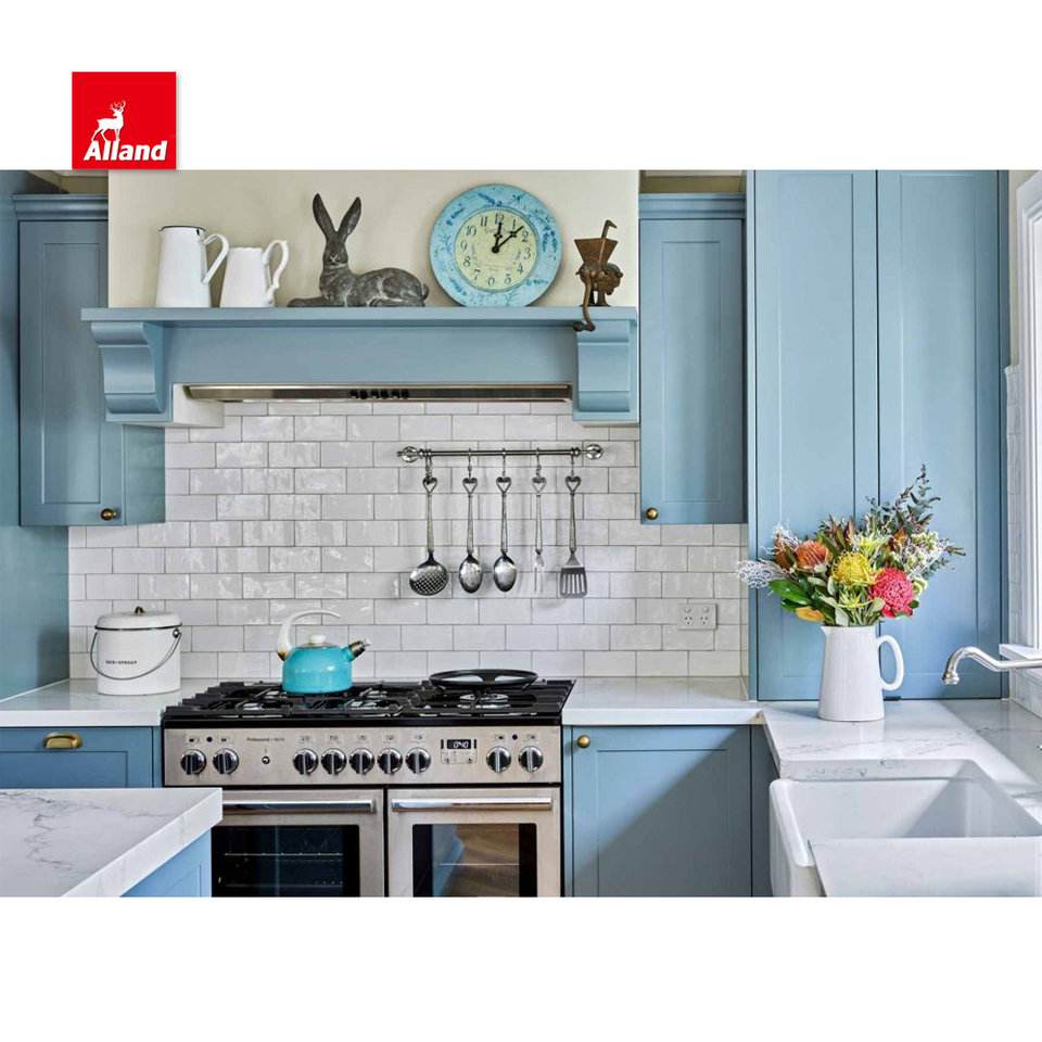 Mobile da Cucina in Stile Hampton Nordico Classico di Design dalla Cina, con Ante Shaker Chic e Accoglienti Blu Ghiaccio e Frigorifero per Vini