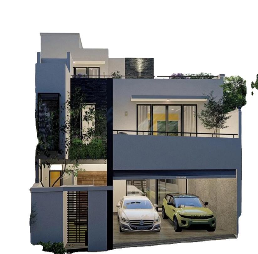 Villa/Resort Contemporaneo in Acciaio con Garage o Posto Auto Coperto, Edificio Modulare Prefabbricato Moderno a 2 Piani con 2-3 Camere da Letto